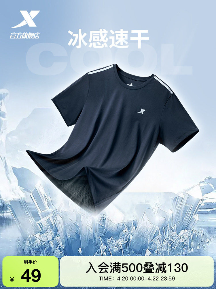 特步速干T男夏季宽松短袖冰丝户外跑步T恤透气上衣男士健身运动服