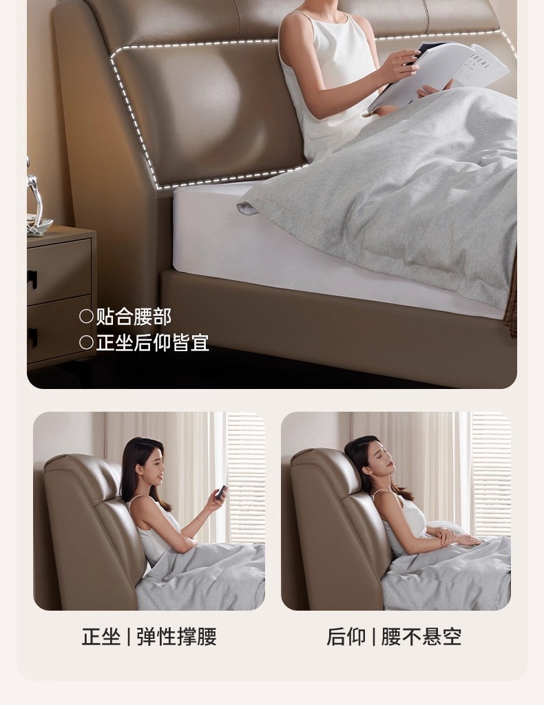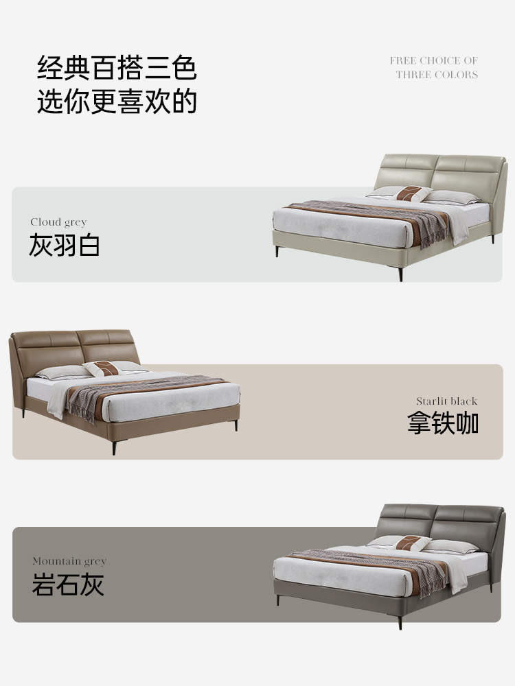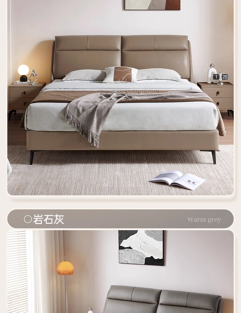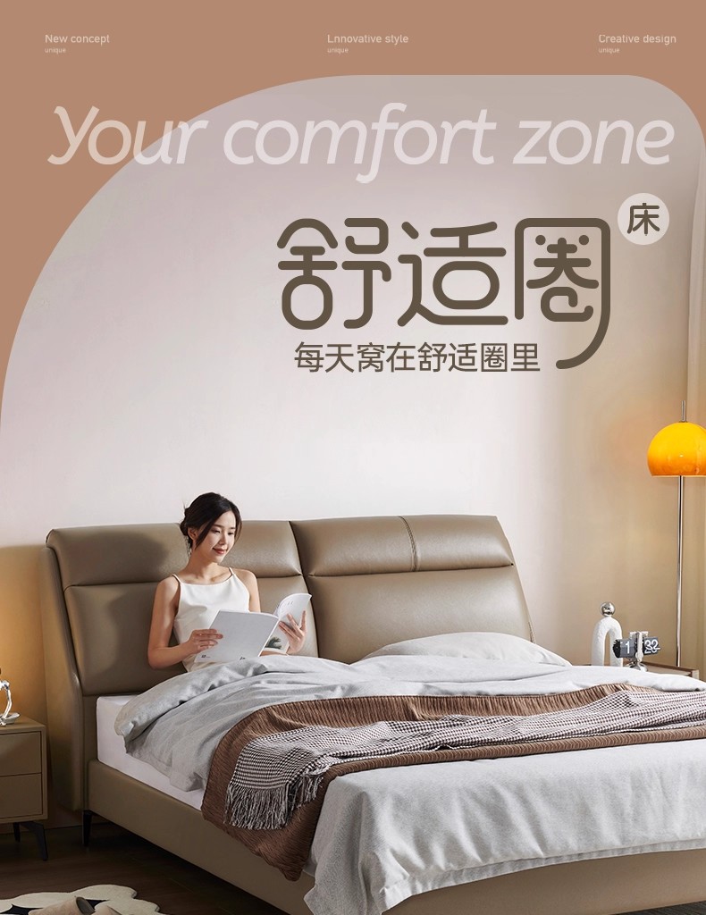 CBD家居现代简约真皮床主卧大床双人床软包床轻奢床皮艺床舒适圈