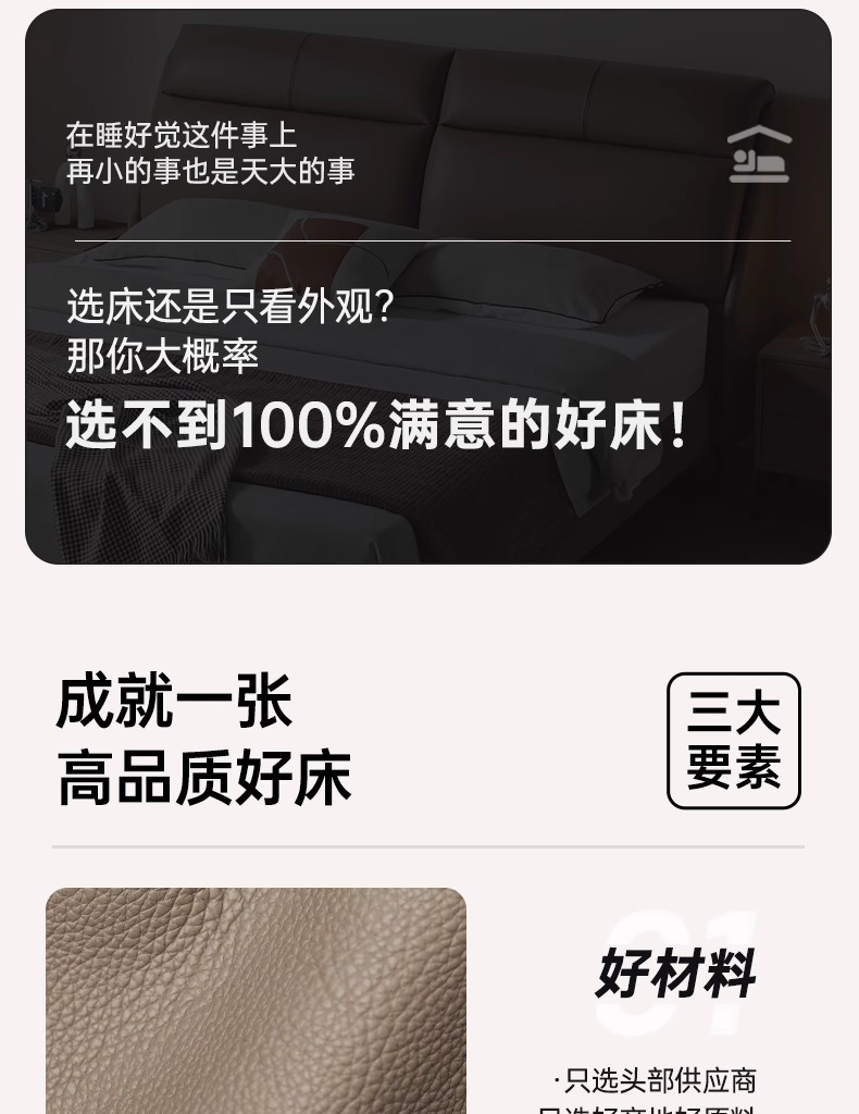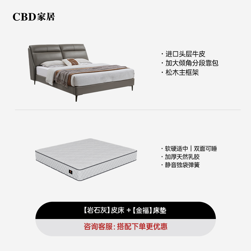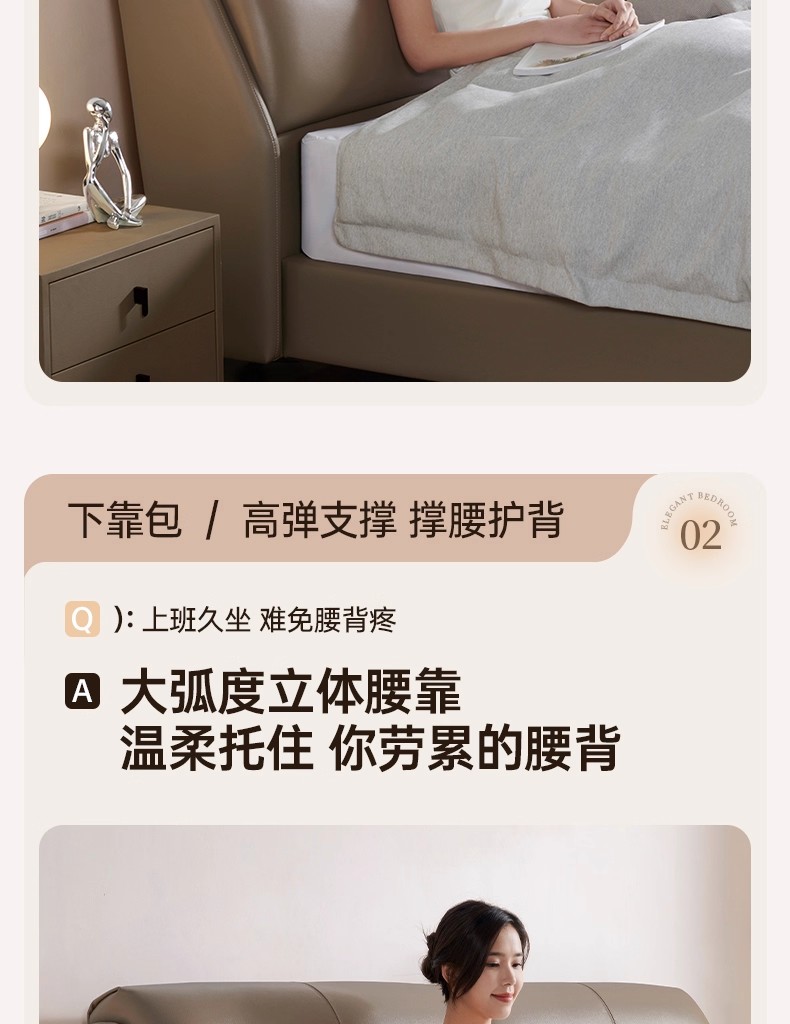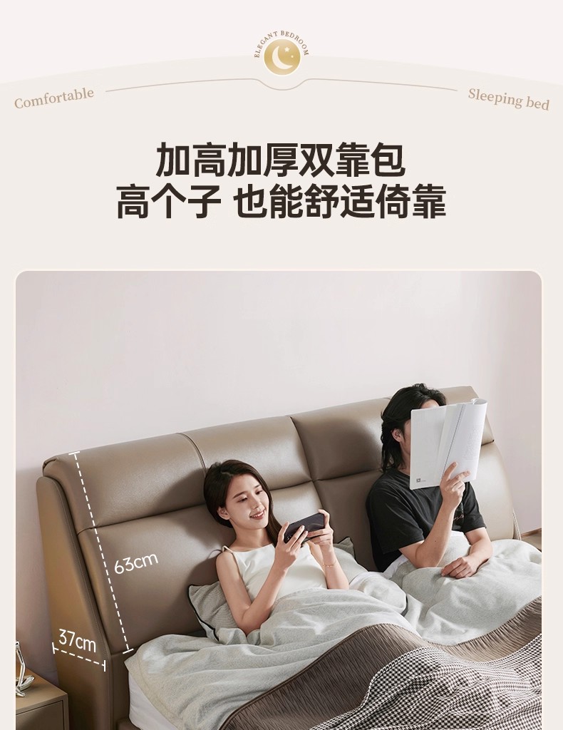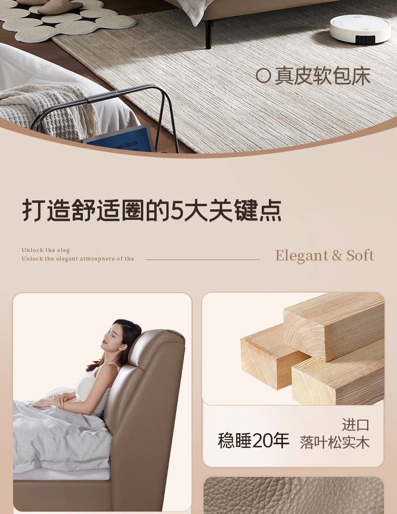 CBD家居现代简约真皮床主卧大床双人床软包床轻奢床皮艺床舒适圈