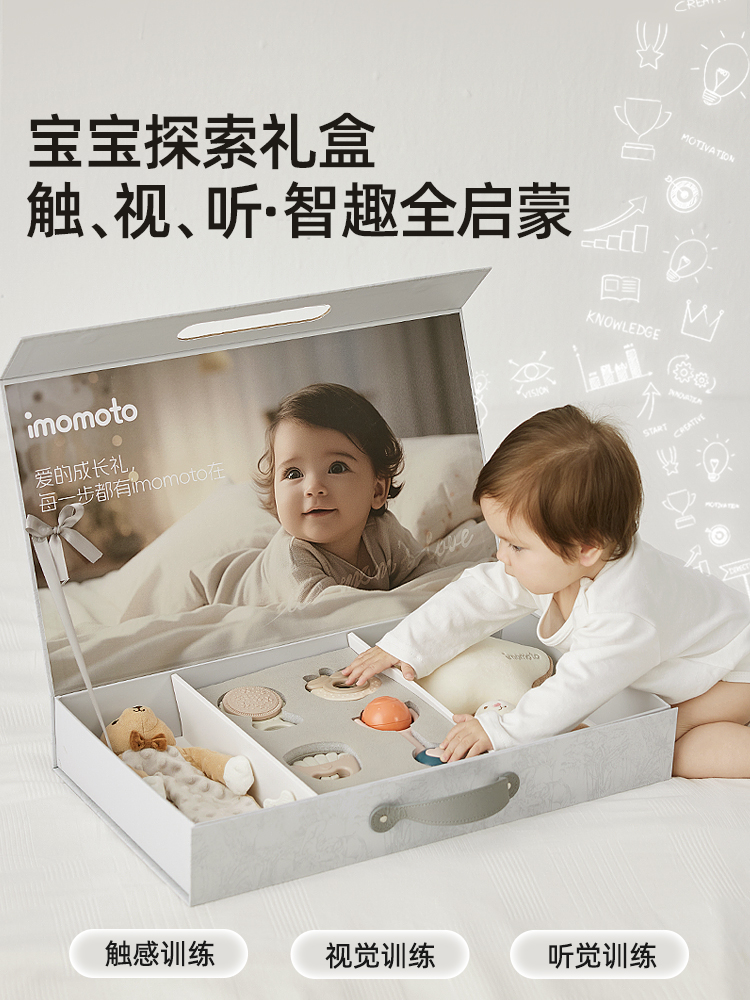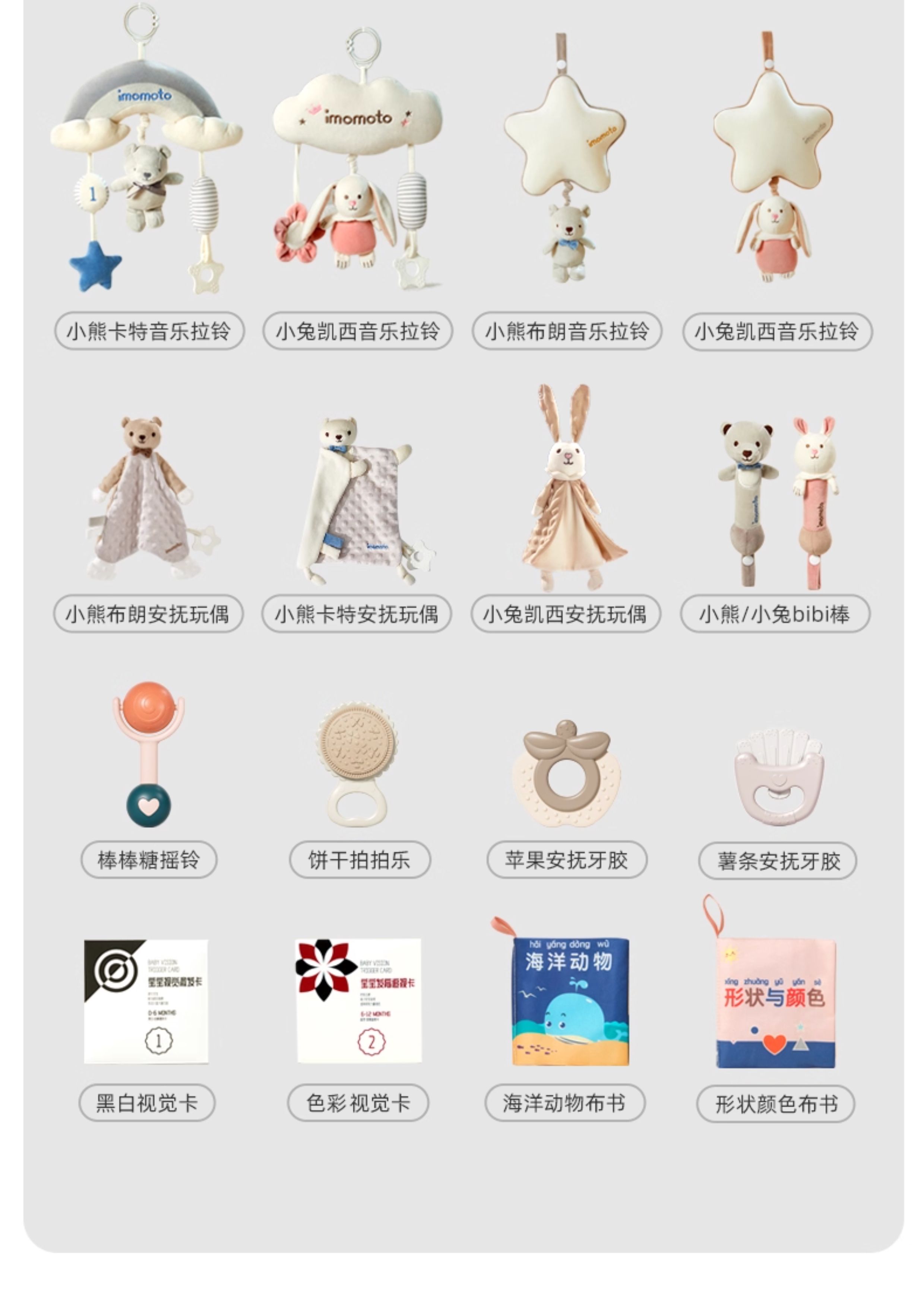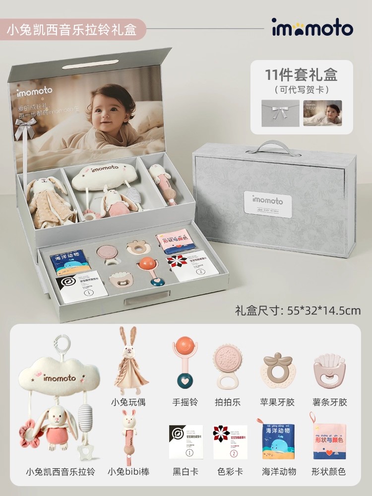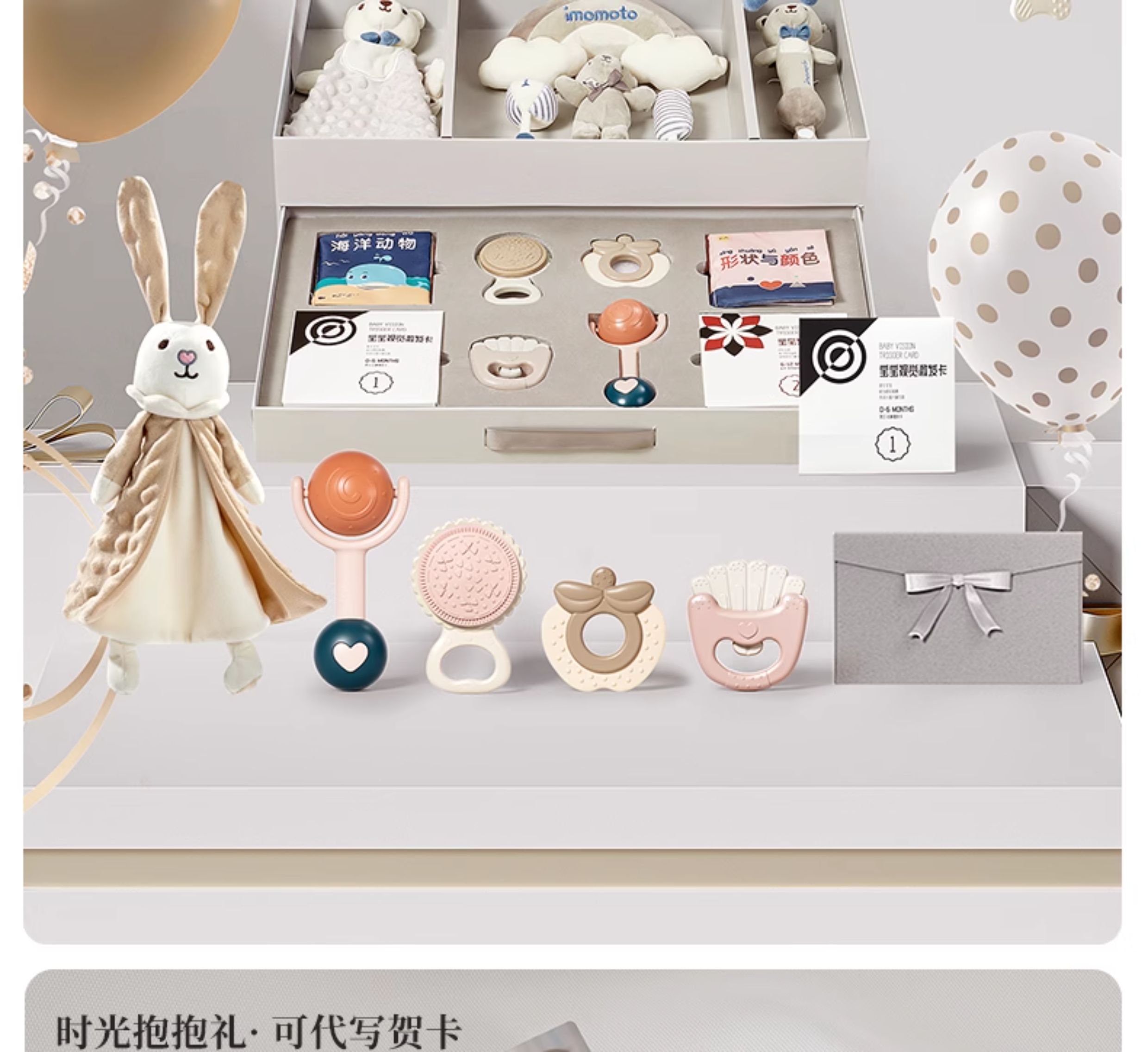 婴儿玩具礼盒安抚套装新生儿宝宝早教满月牙胶儿童1周岁见面礼物