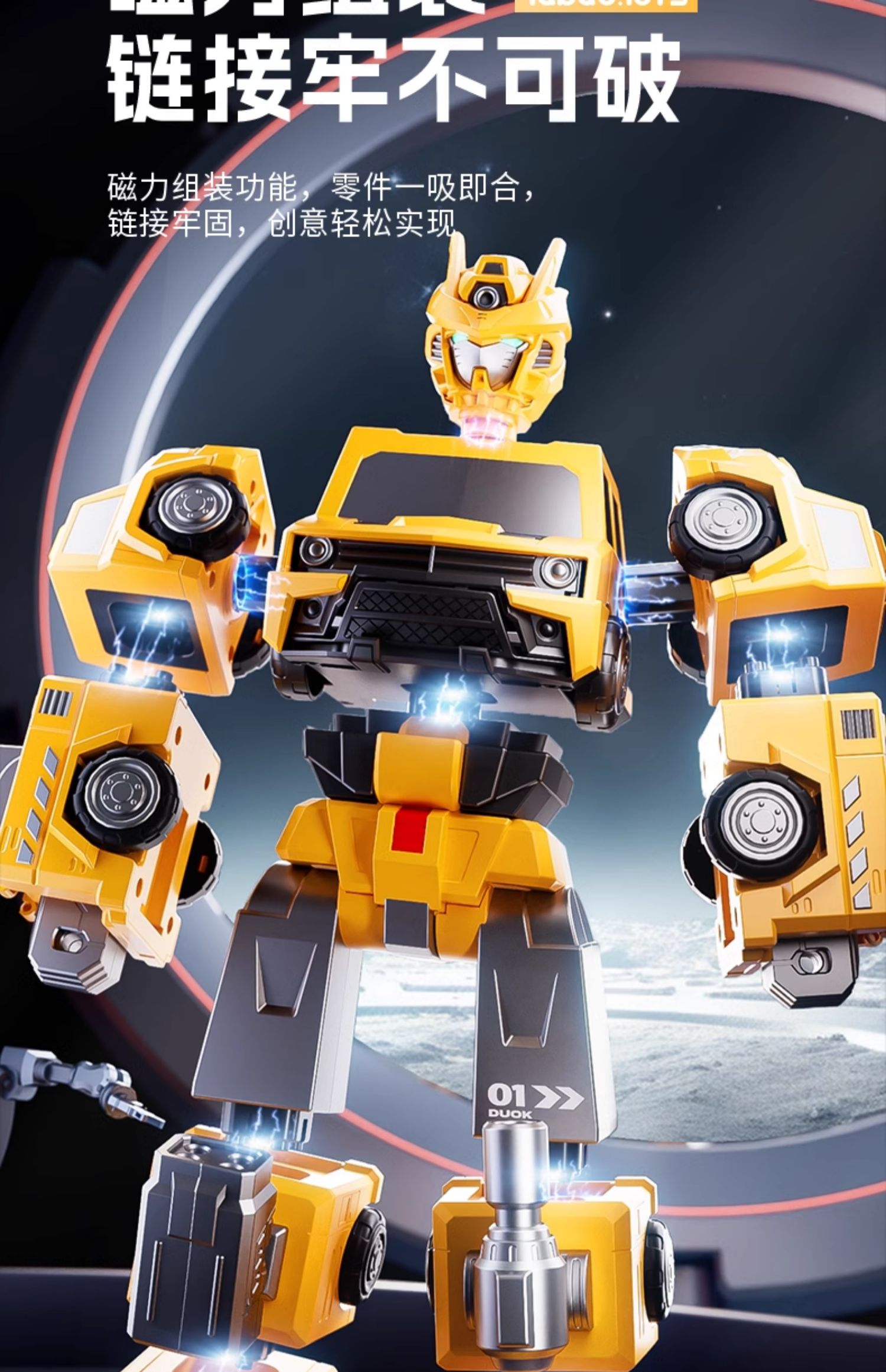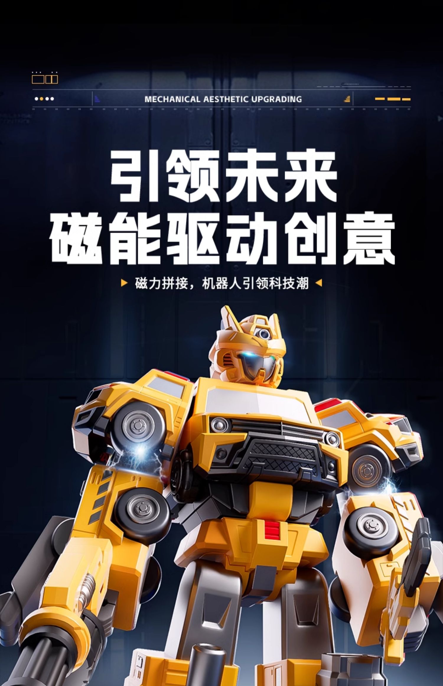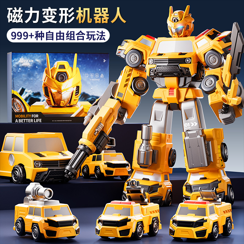 2025新款变形儿童金刚磁力益智玩具男孩生日礼物黄蜂大汽车机器人