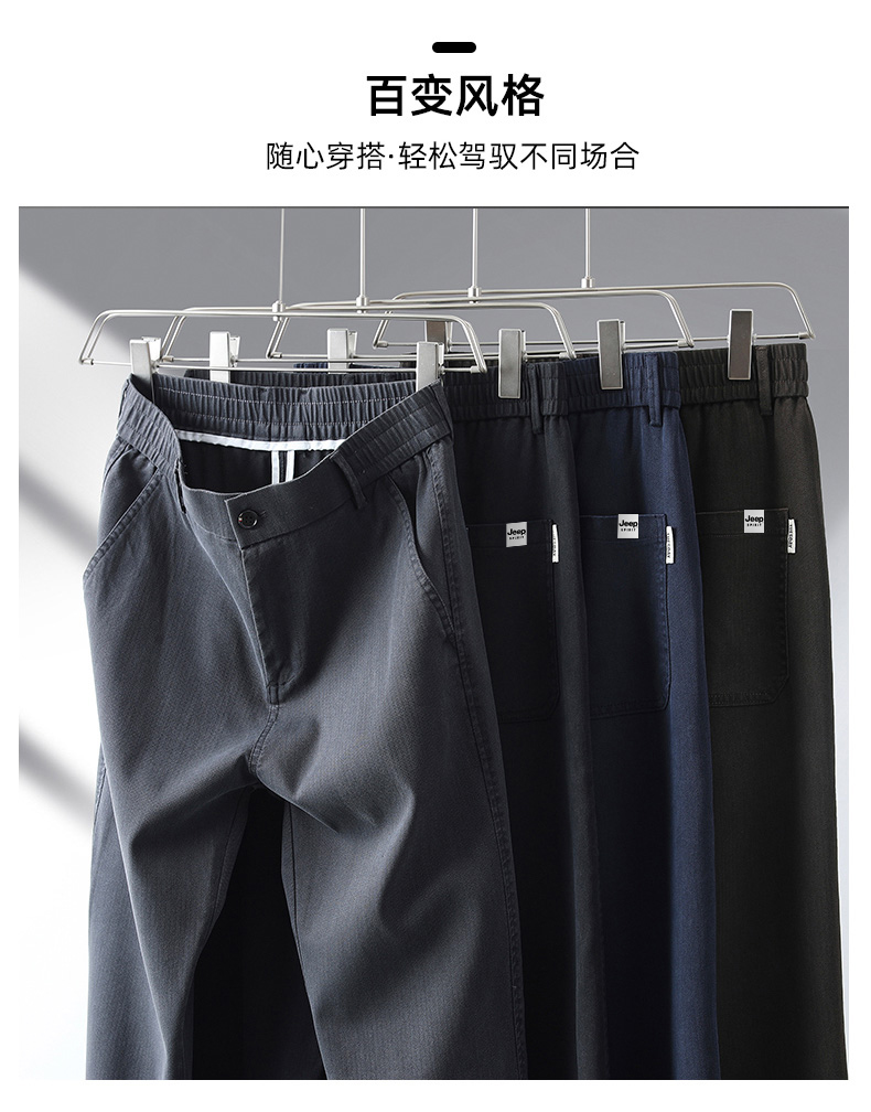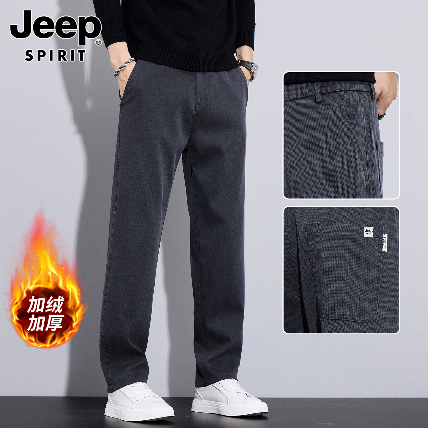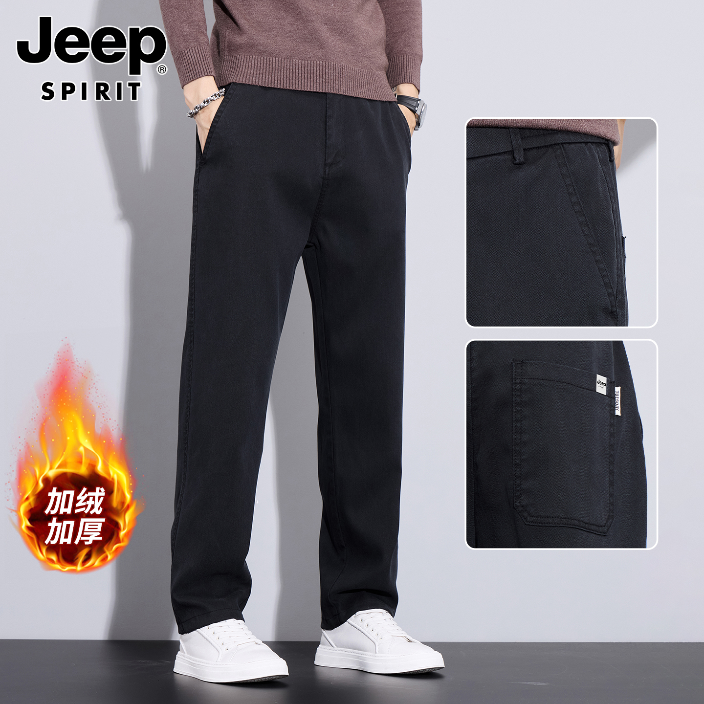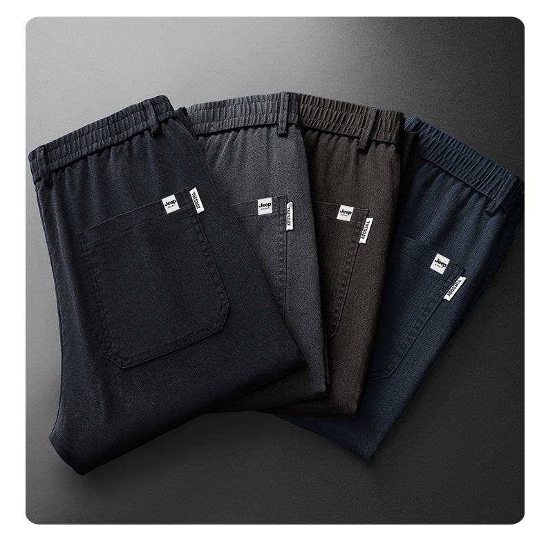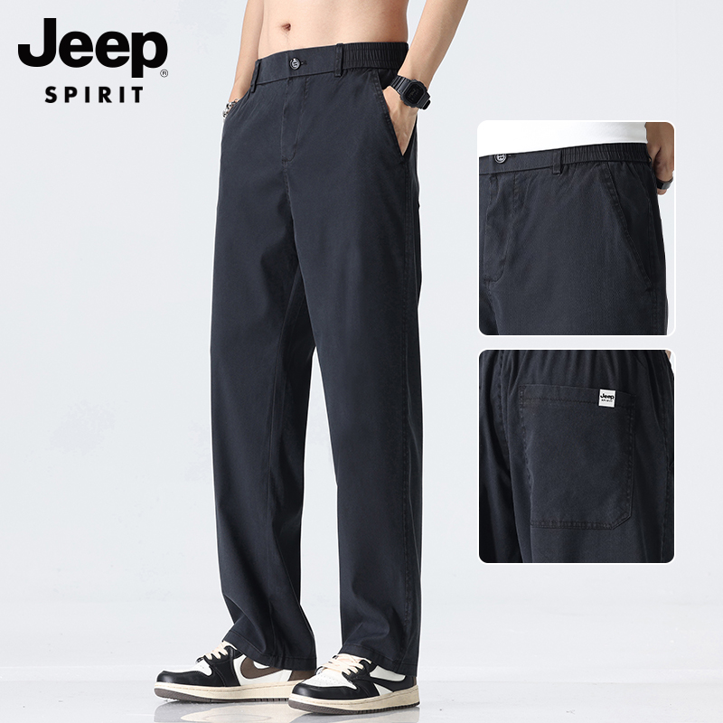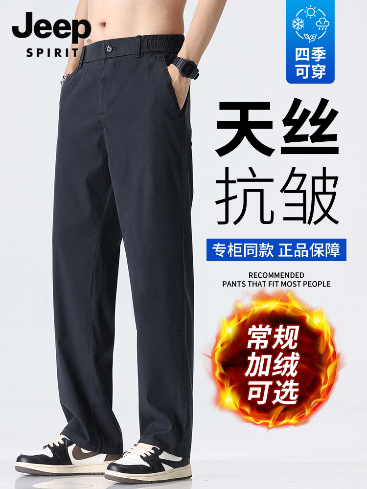 吉普男士裤子男秋冬季加绒加厚裤直筒休闲裤新款男裤爸爸商务男装