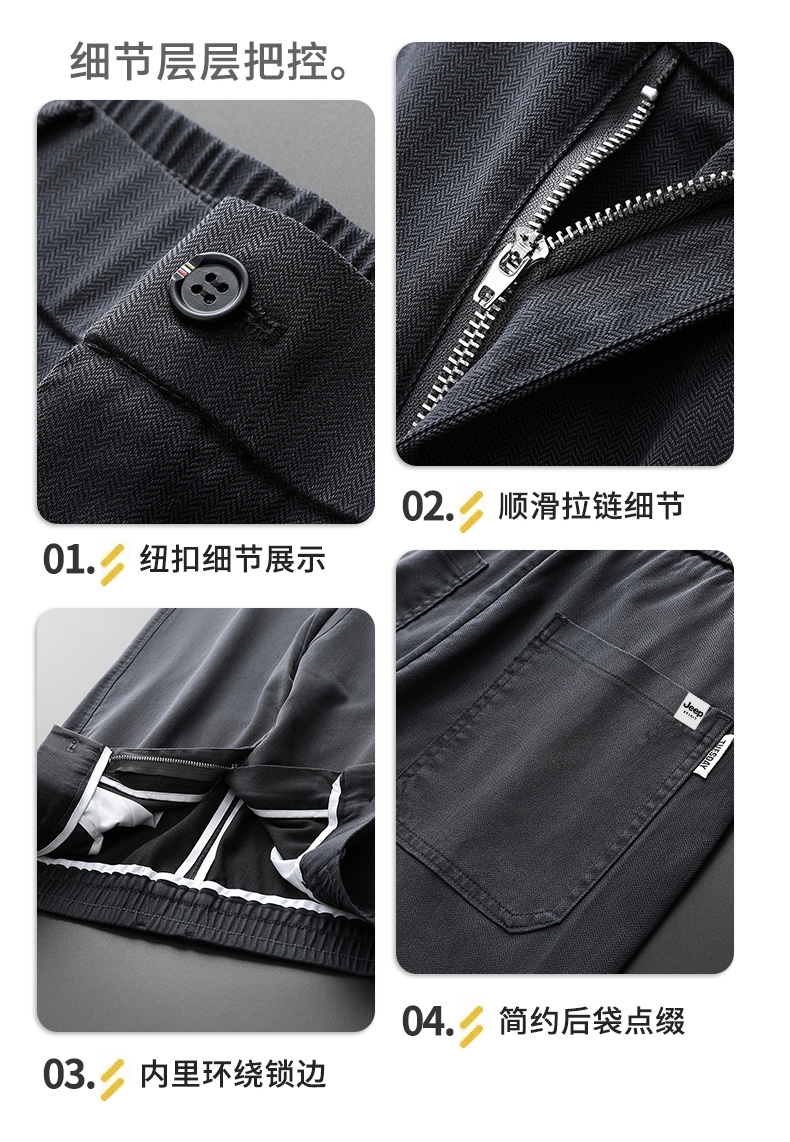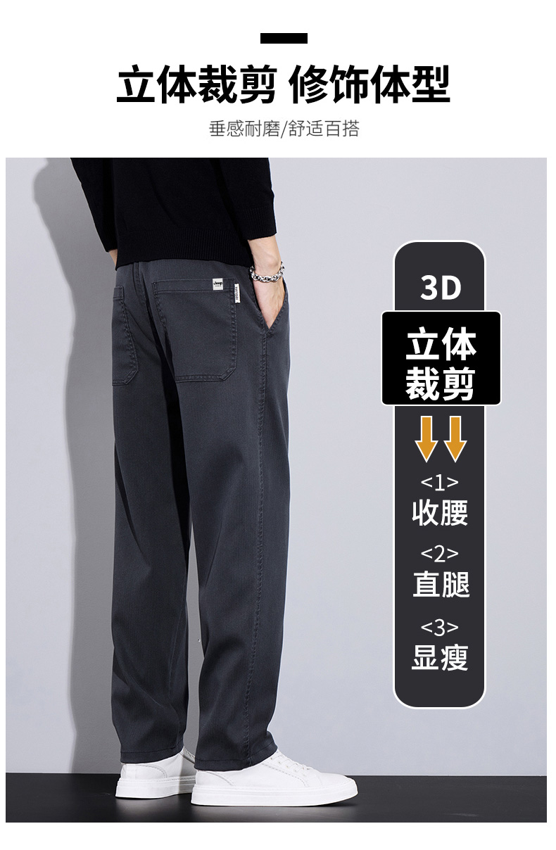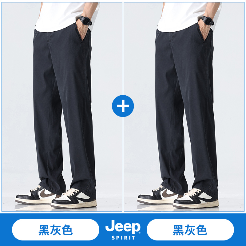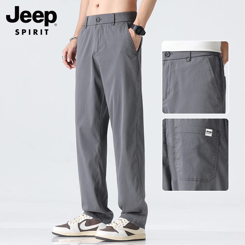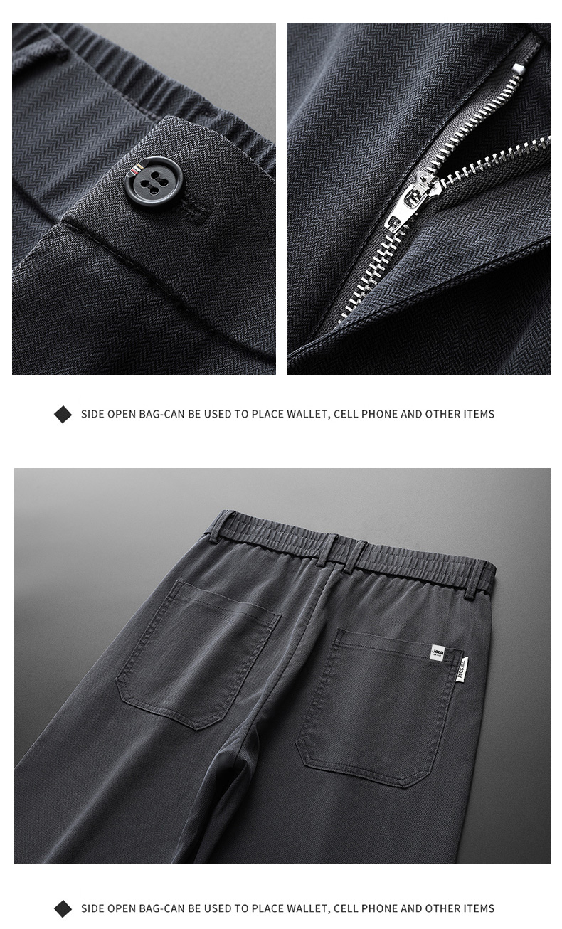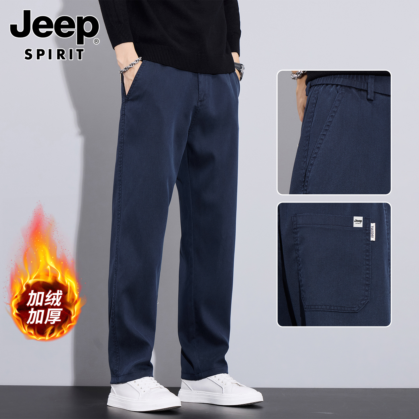 吉普男士裤子男秋冬季加绒加厚裤直筒休闲裤新款男裤爸爸商务男装