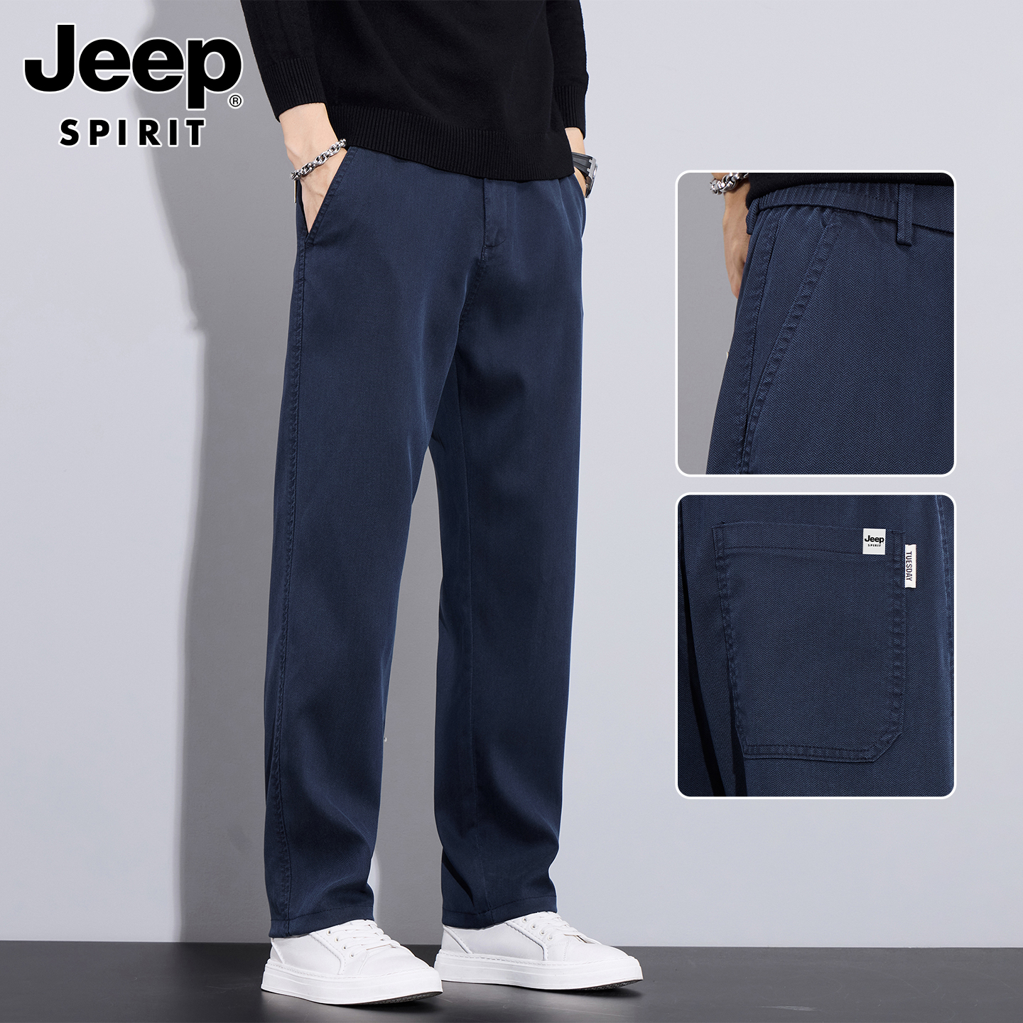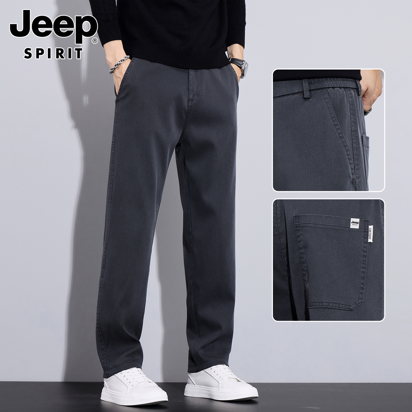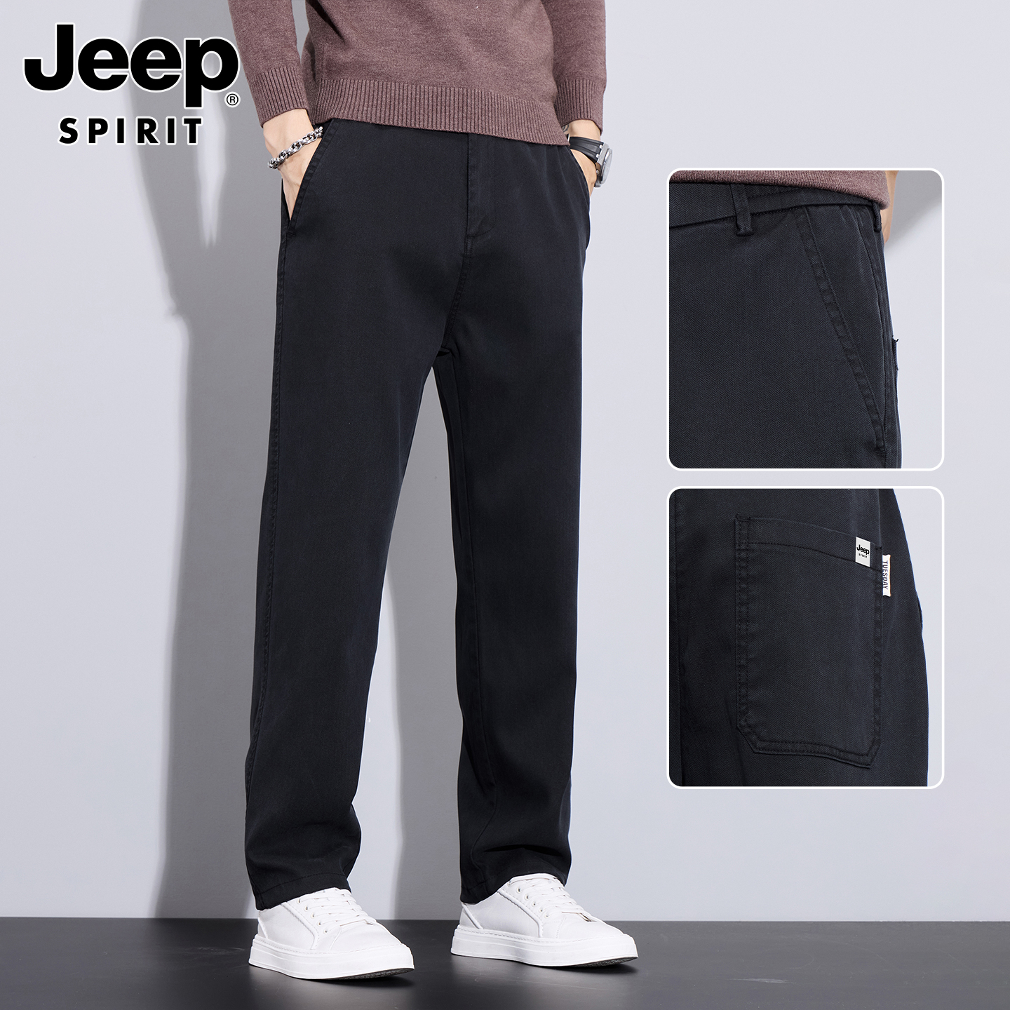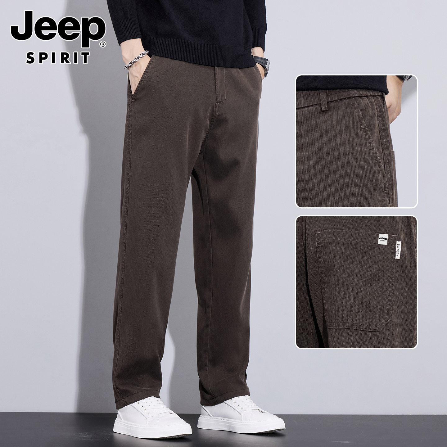 吉普男士裤子男秋冬季加绒加厚裤直筒休闲裤新款男裤爸爸商务男装