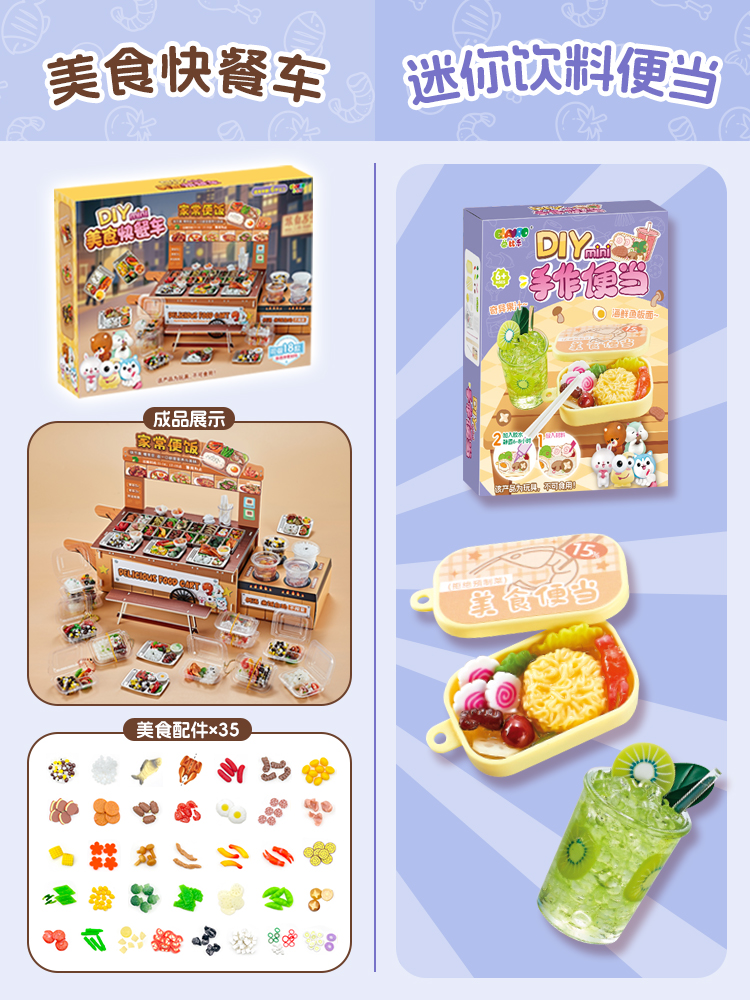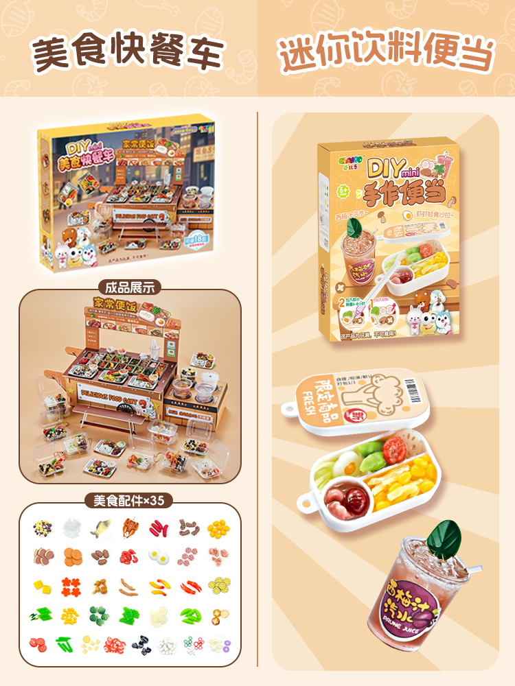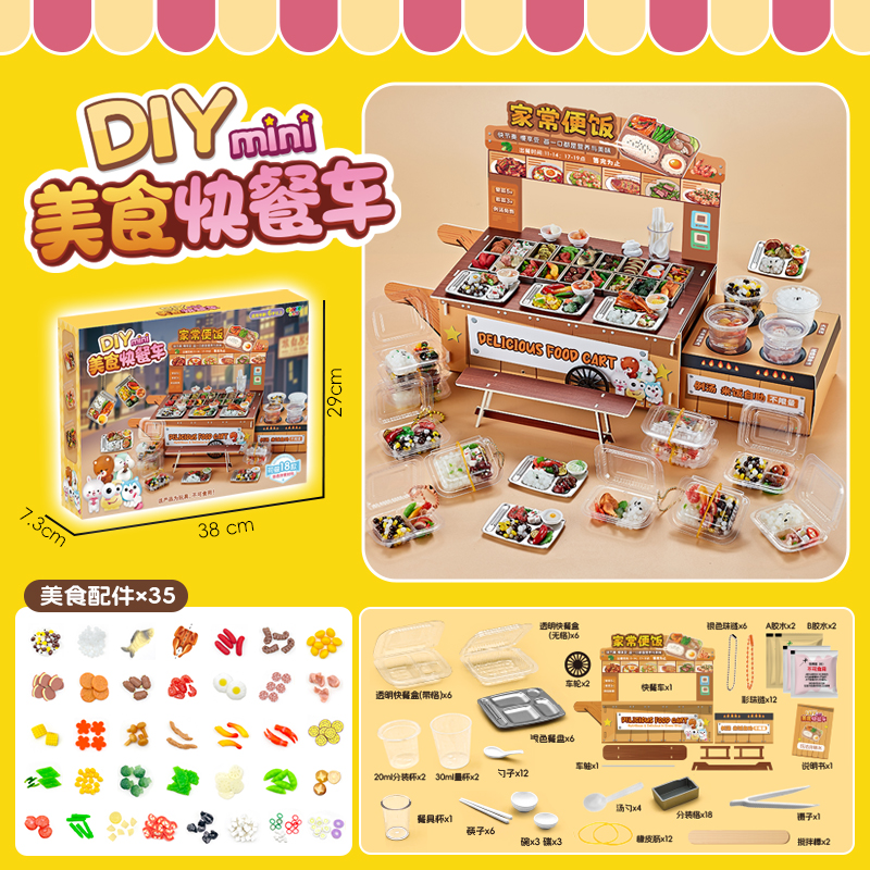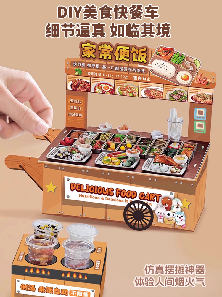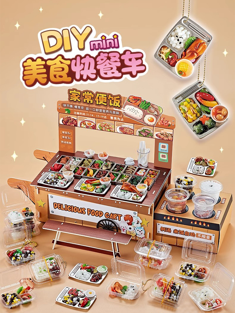 DIY美食快餐车微缩迷你食玩糖水铺打发时间玩具女孩手工6岁以上8