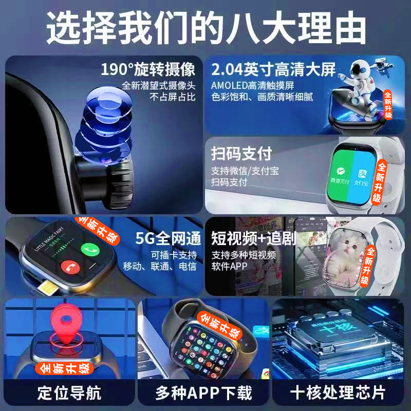 【官方正品】华强北双系统摩斯防查5G全网通WiFi智能电话手表儿童学生初高中任意下载app刷视频游戏