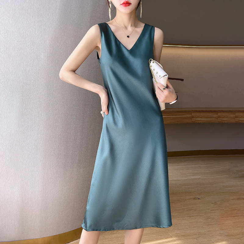 高级感赫本小黑裙春夏吊带连衣裙女无袖缎面中长款纯色内搭长裙子