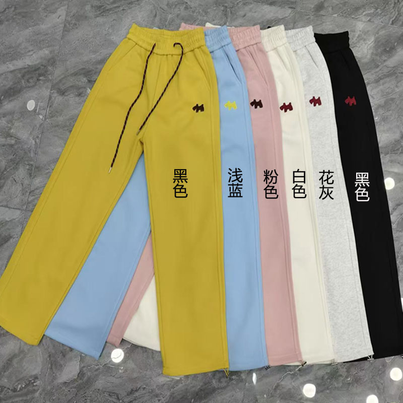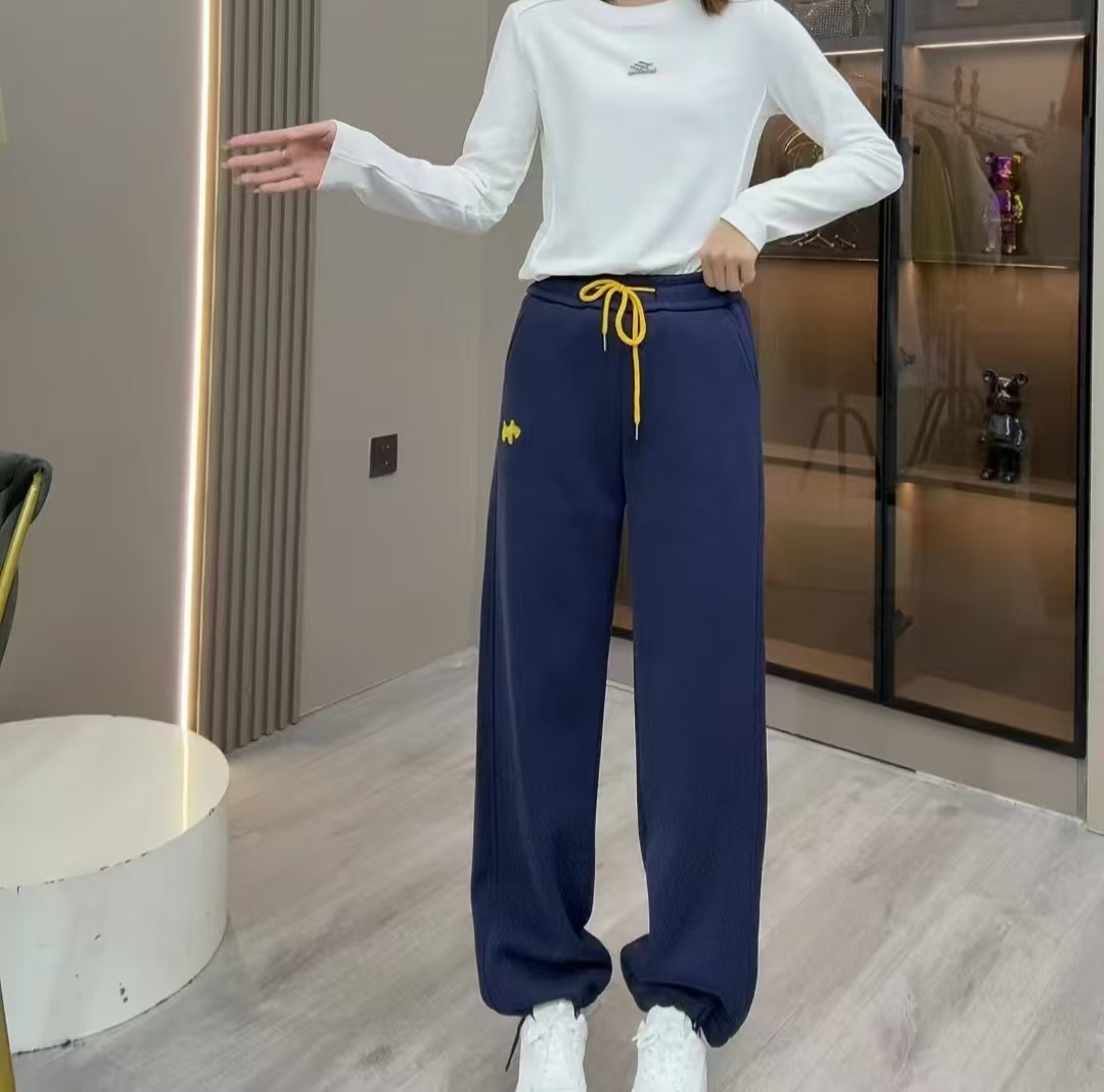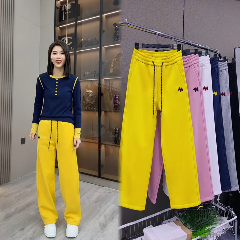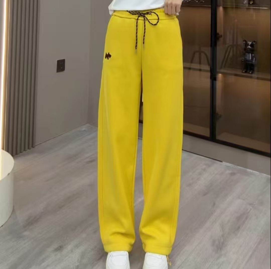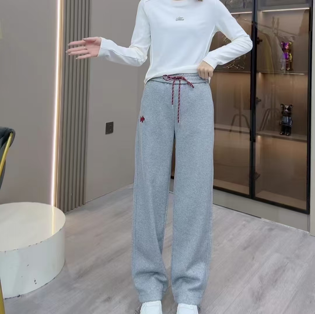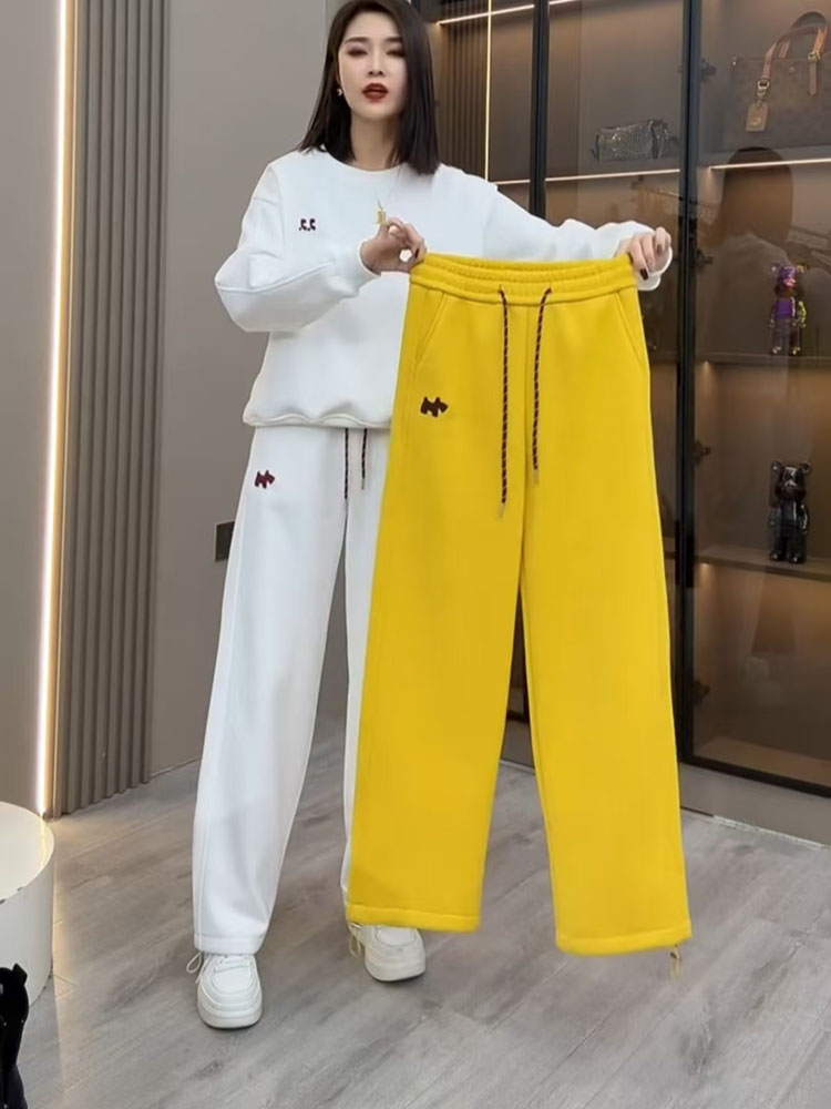纯棉窄版阔腿裤女冬季2024新款垂感加绒加长卫裤女士休闲直筒长裤