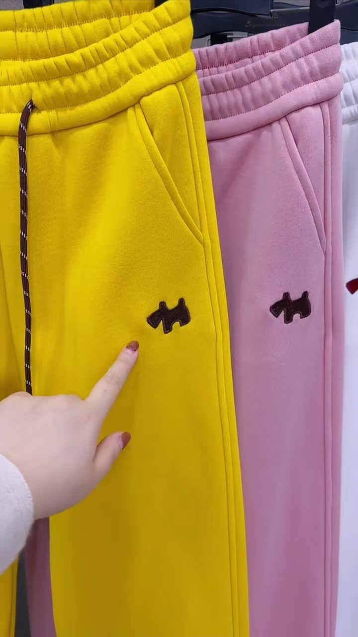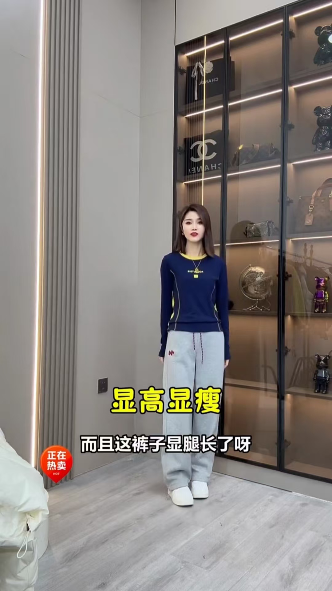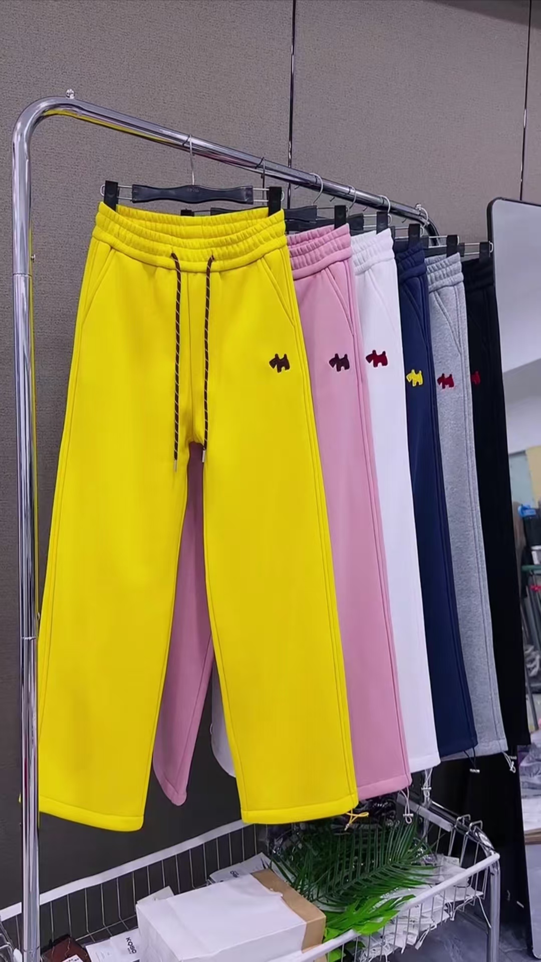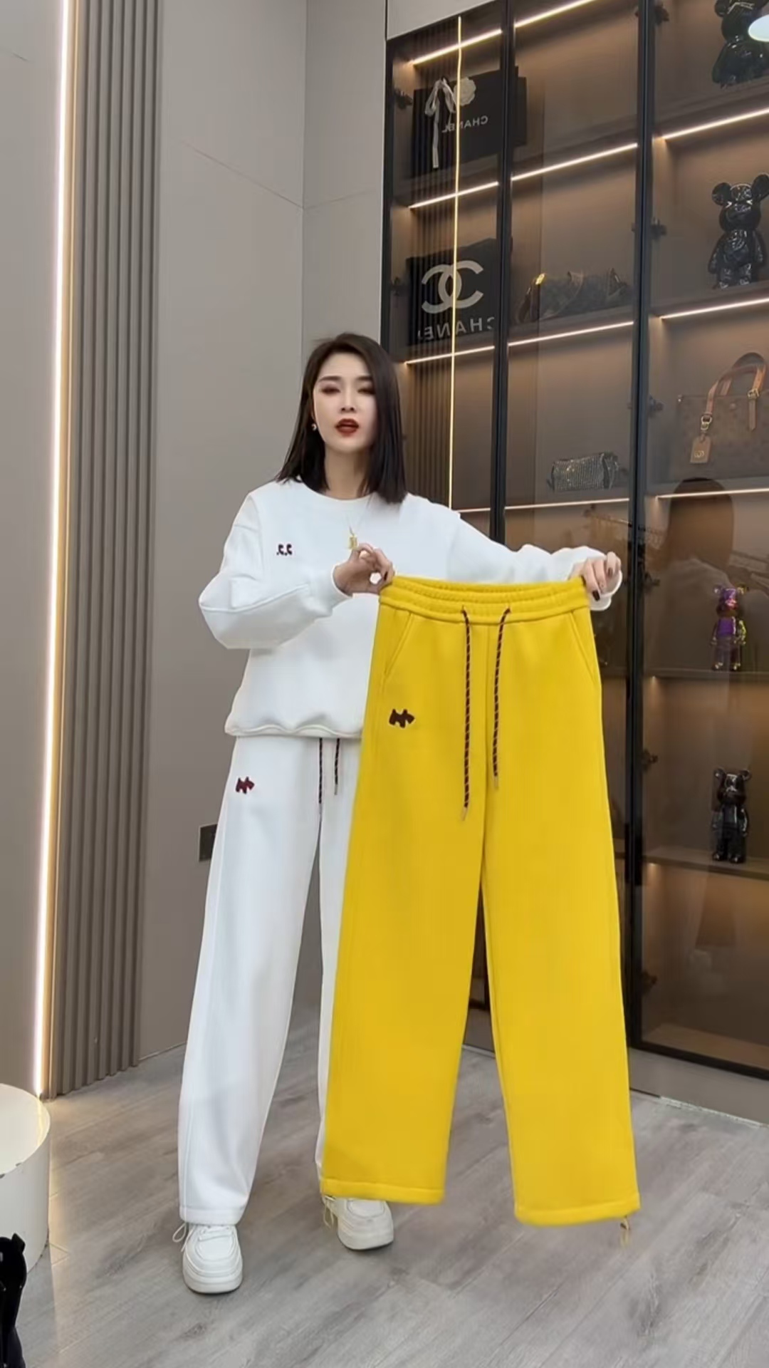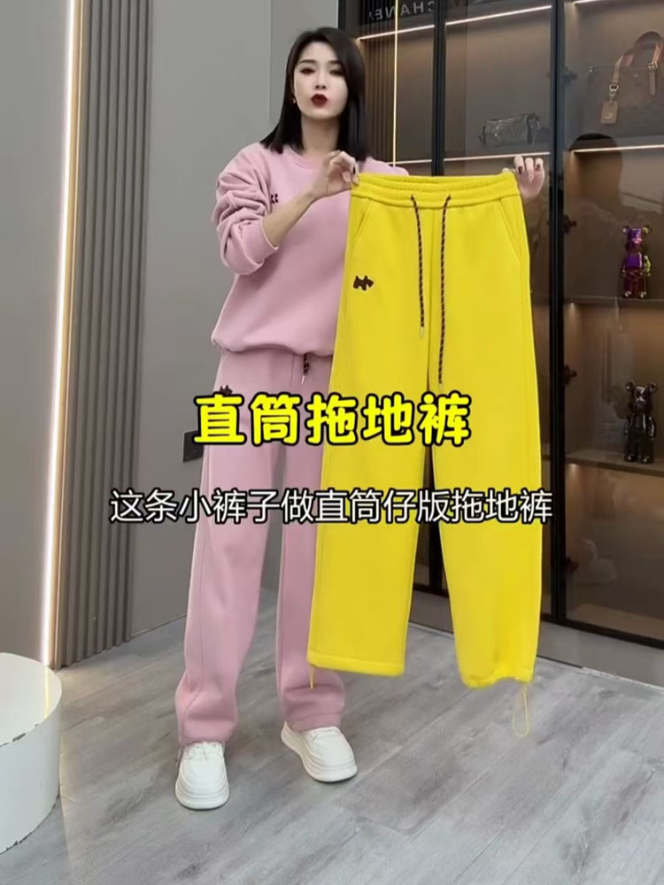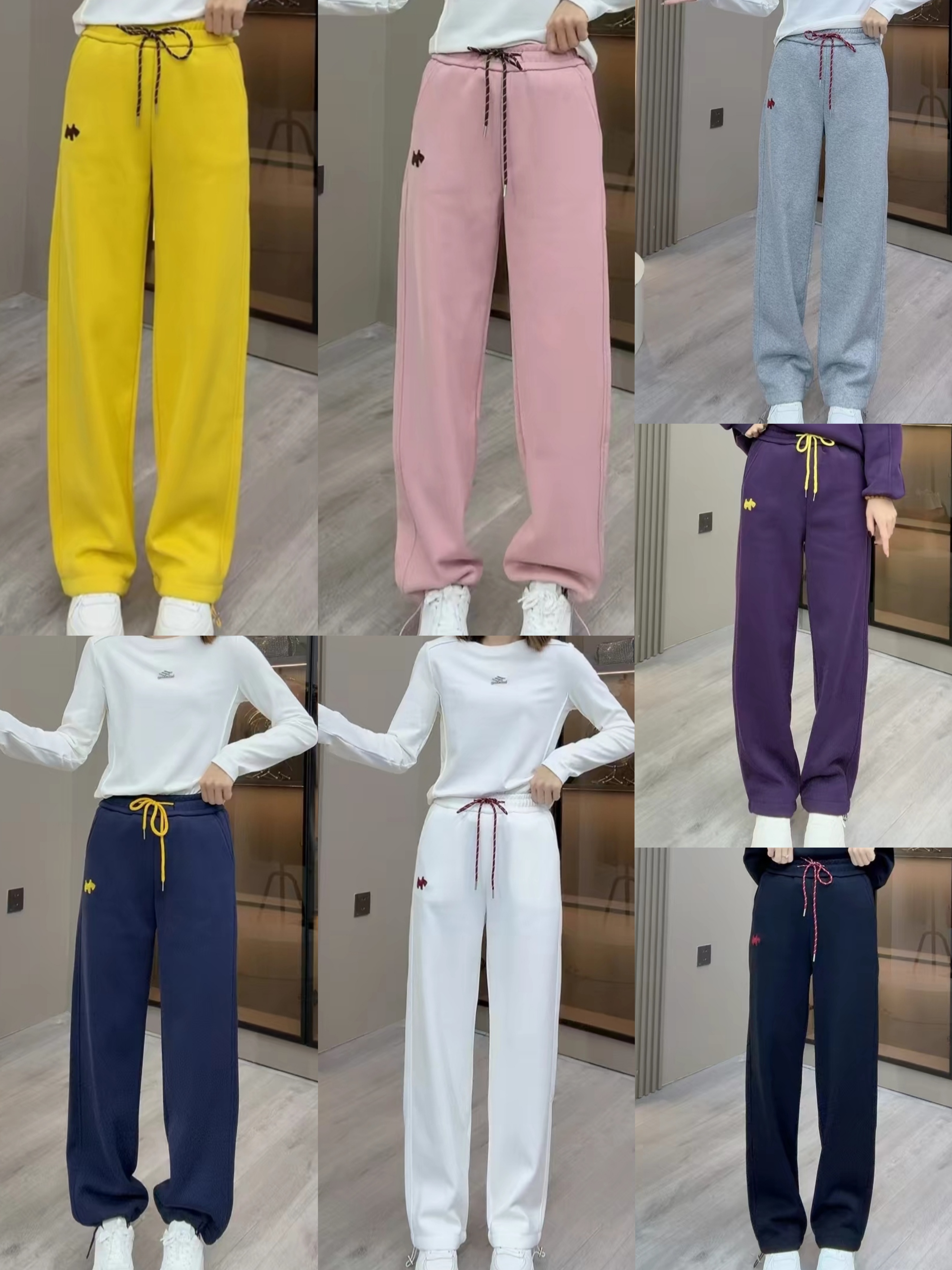 纯棉窄版阔腿裤女冬季2024新款垂感加绒加长卫裤女士休闲直筒长裤