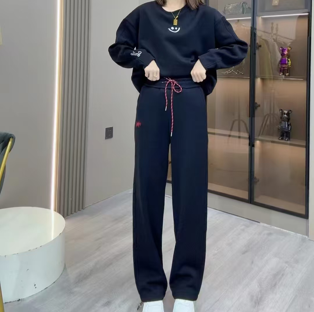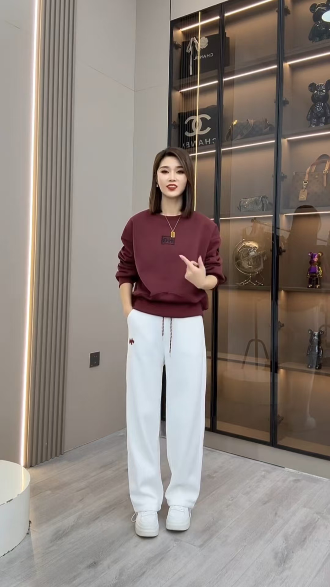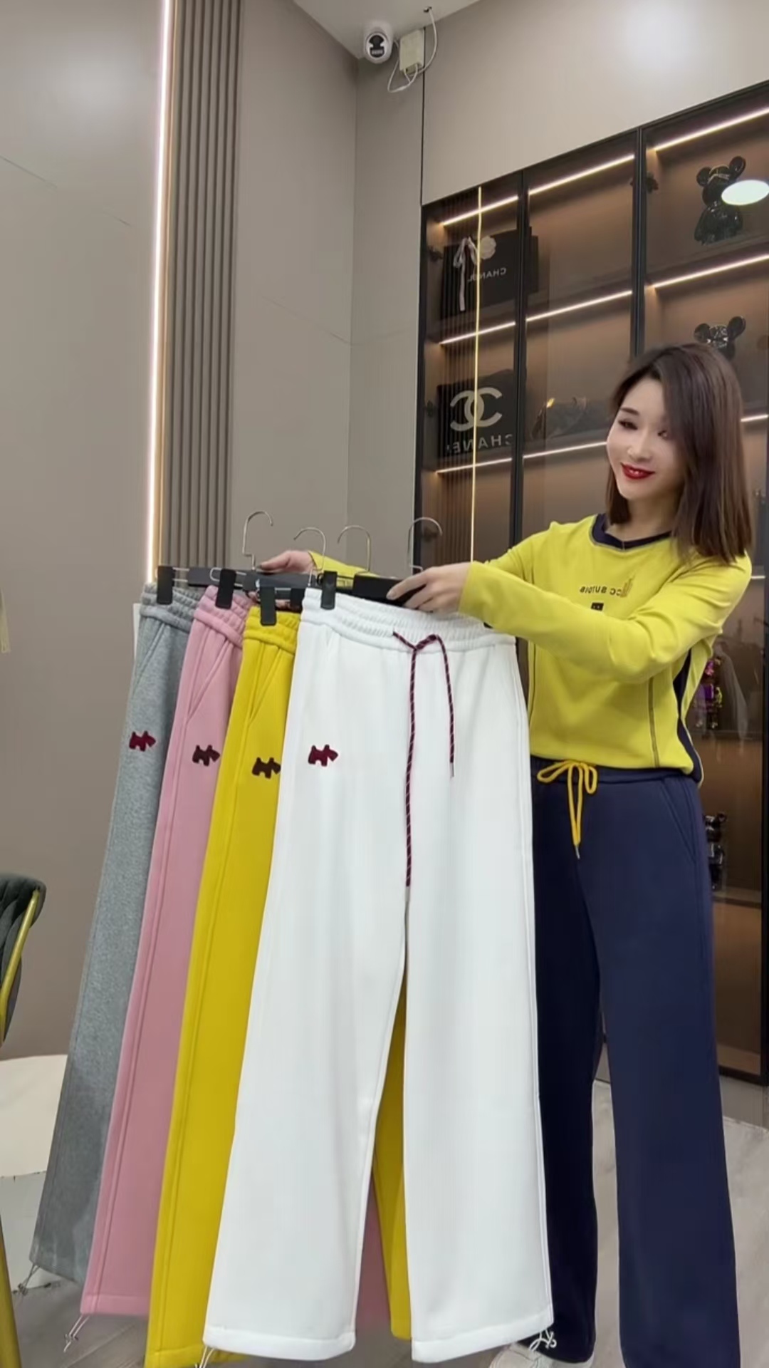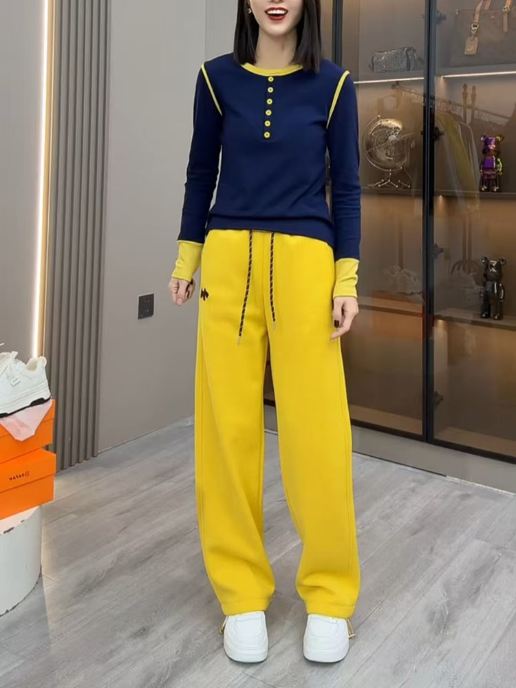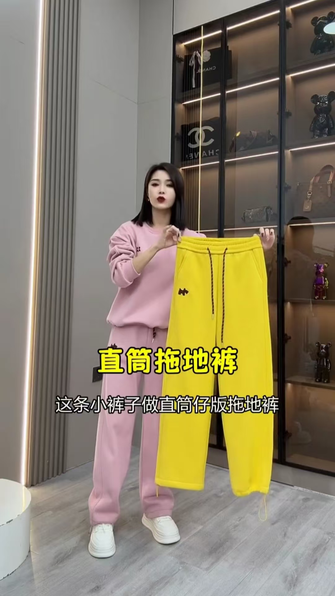 纯棉窄版阔腿裤女冬季2024新款垂感加绒加长卫裤女士休闲直筒长裤