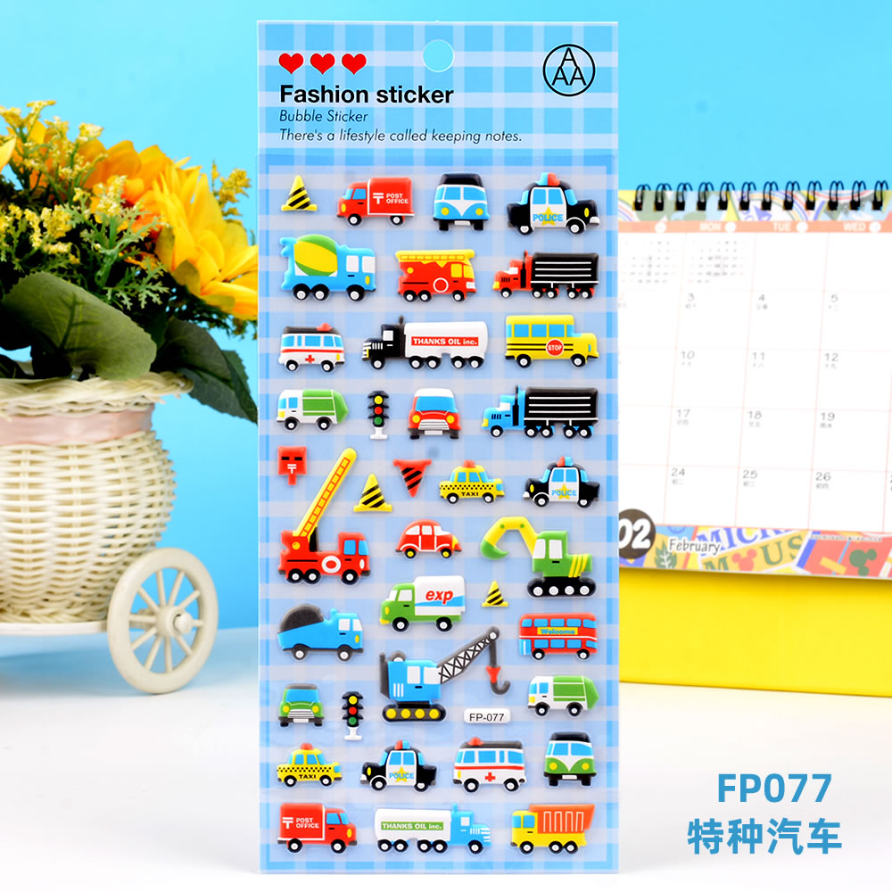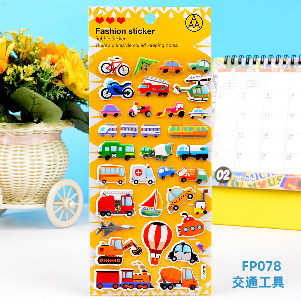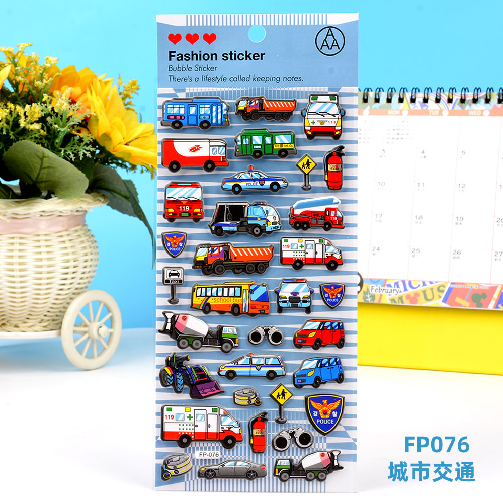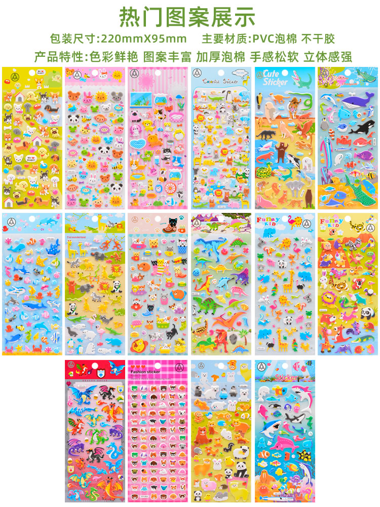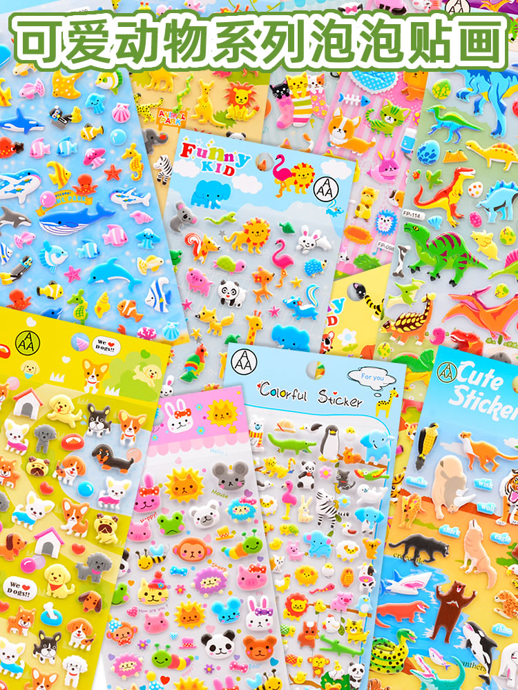 儿童立体泡泡贴纸恐龙动物汽车男孩女孩幼儿园宝宝奖励装饰小贴画
