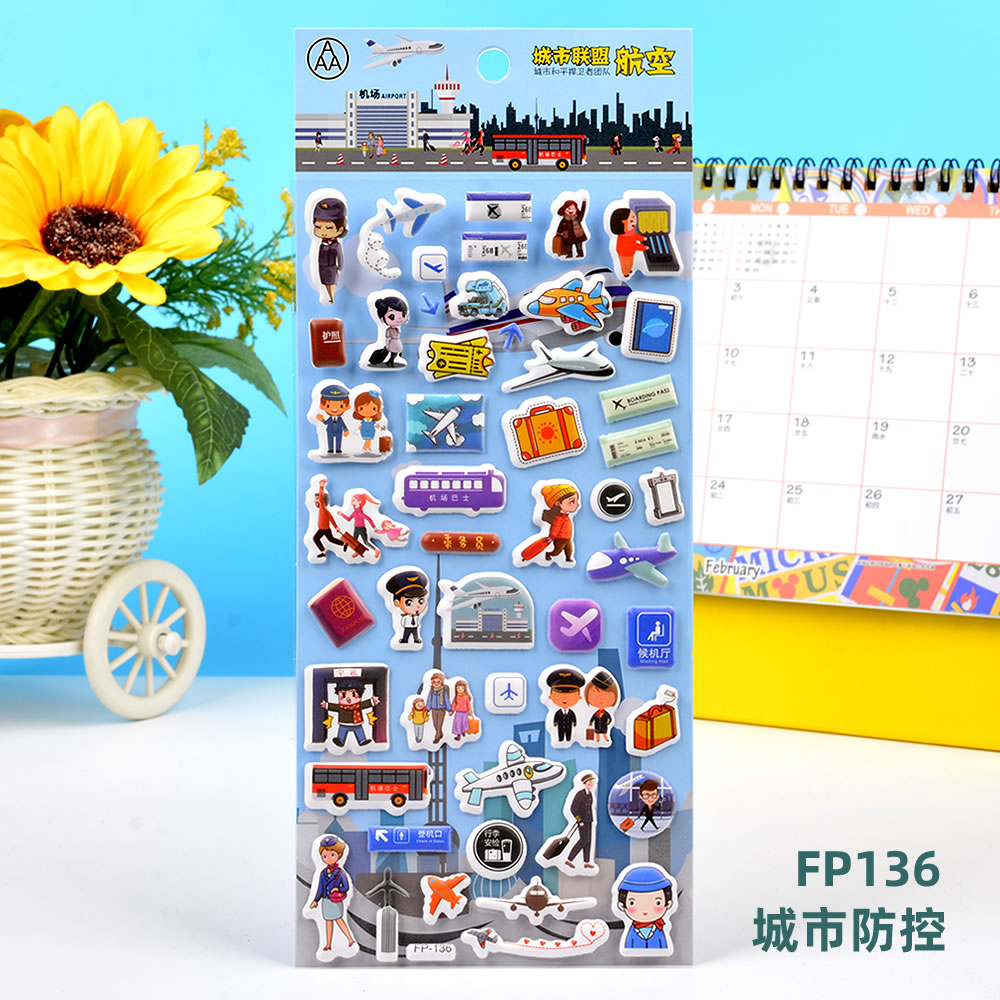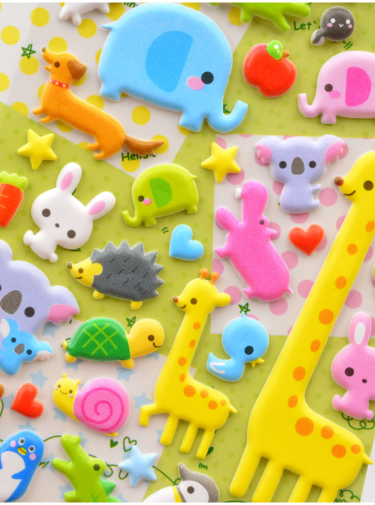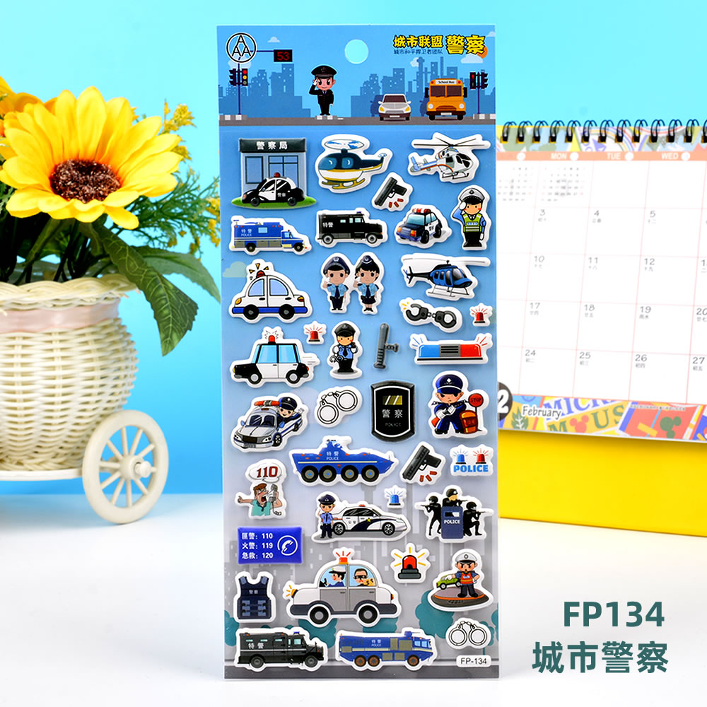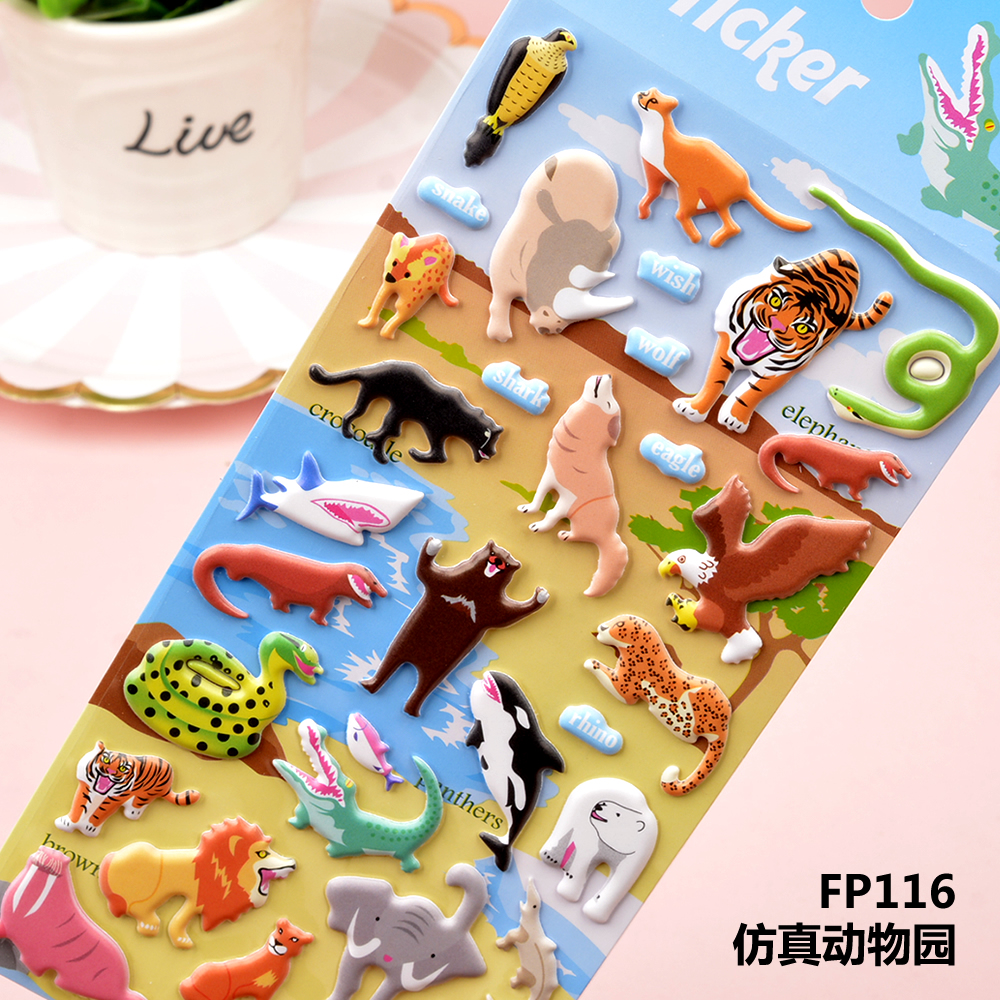 儿童立体泡泡贴纸恐龙动物汽车男孩女孩幼儿园宝宝奖励装饰小贴画